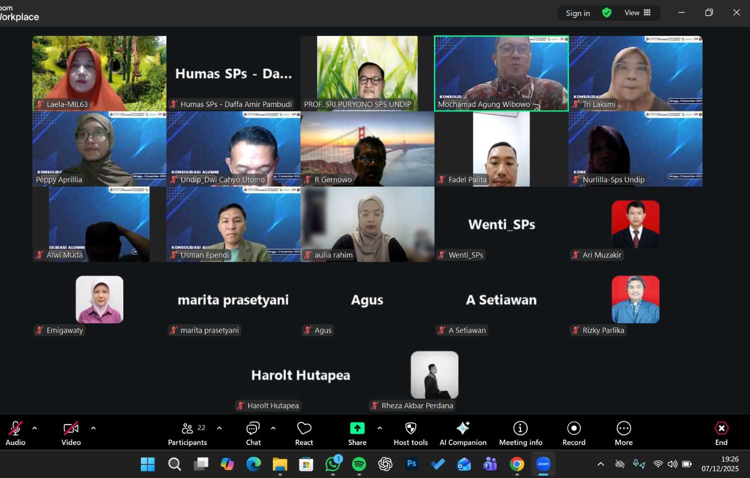 Undip, Semarang (7/12/2025) — Sekolah Pascasarjana Universitas Diponegoro sukses menyelenggarakan Konsolidasi Alumni Sekolah Pascasarjana Undip 2025 pada Minggu, 7 Desember 2025 secara daring melalui platform Zoom Meeting. Acara yang berlangsung mulai pukul 19.15 WIB hingga 20.30 WIB ini dihadiri oleh para alumni, sivitas akademika, serta tamu undangan yang antusias mengikuti rangkaian kegiatan yang disusun untuk […]