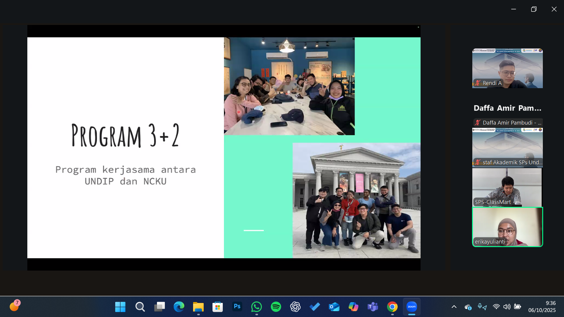 Undip, Semarang (6/10/2025) — The Postgraduate School of Diponegoro University is once again presenting an inspiring event titled “Diaspora: Global Opportunities and Inspiration,” which this time features Diponegoro University alumni currently working in Taiwan. This event serves as a platform for students to share experiences, motivation, and opportunities for international collaboration. This event was held online via the Zoom online platform on Monday, October 6, 2025.