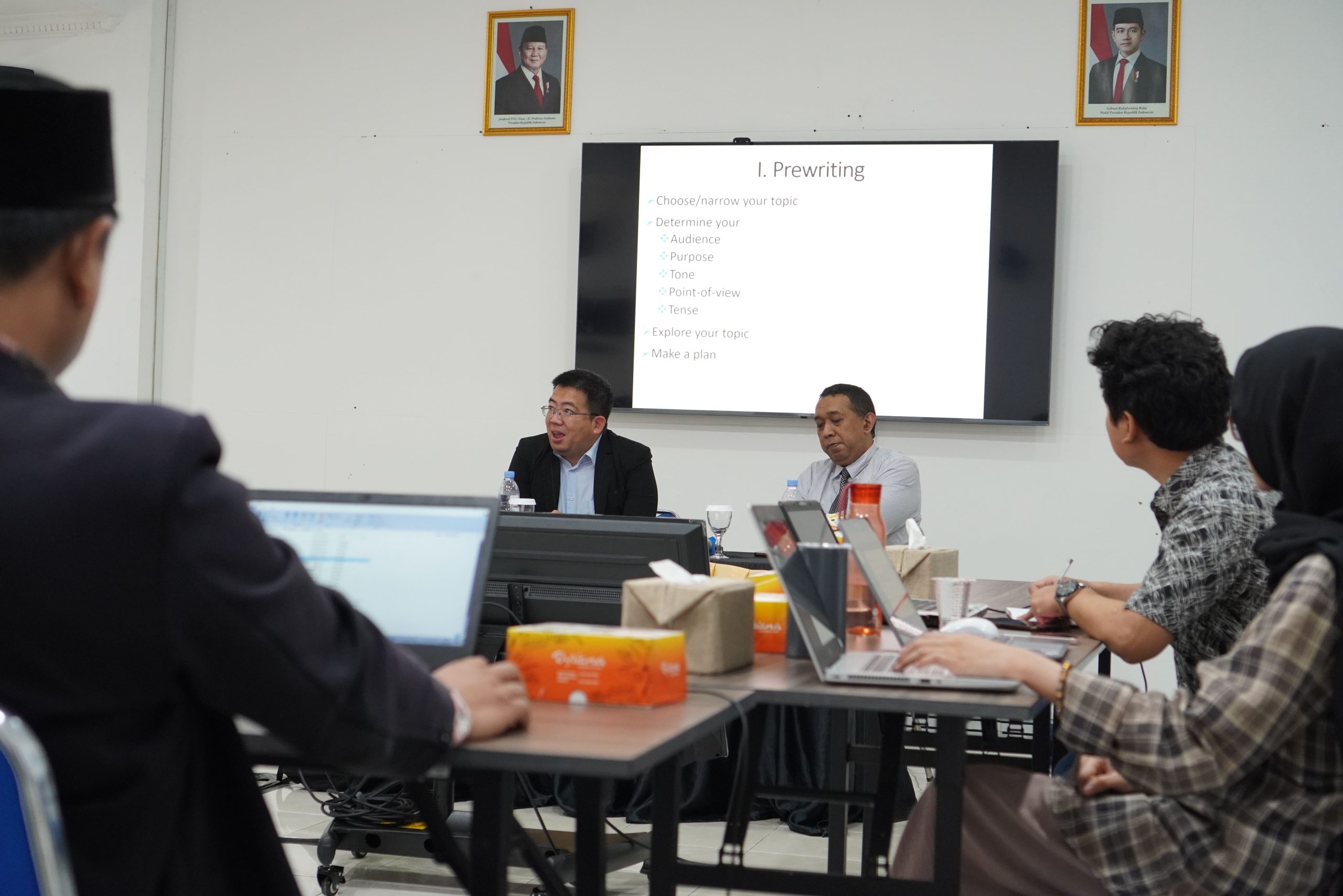 Dalam pemaparannya, Prof. Tonni menekankan bahwa keterampilan menulis akademik berbahasa Inggris merupakan kompetensi penting untuk publikasi internasional, sekaligus menjadi kunci agar hasil penelitian dapat menjangkau audiens global.